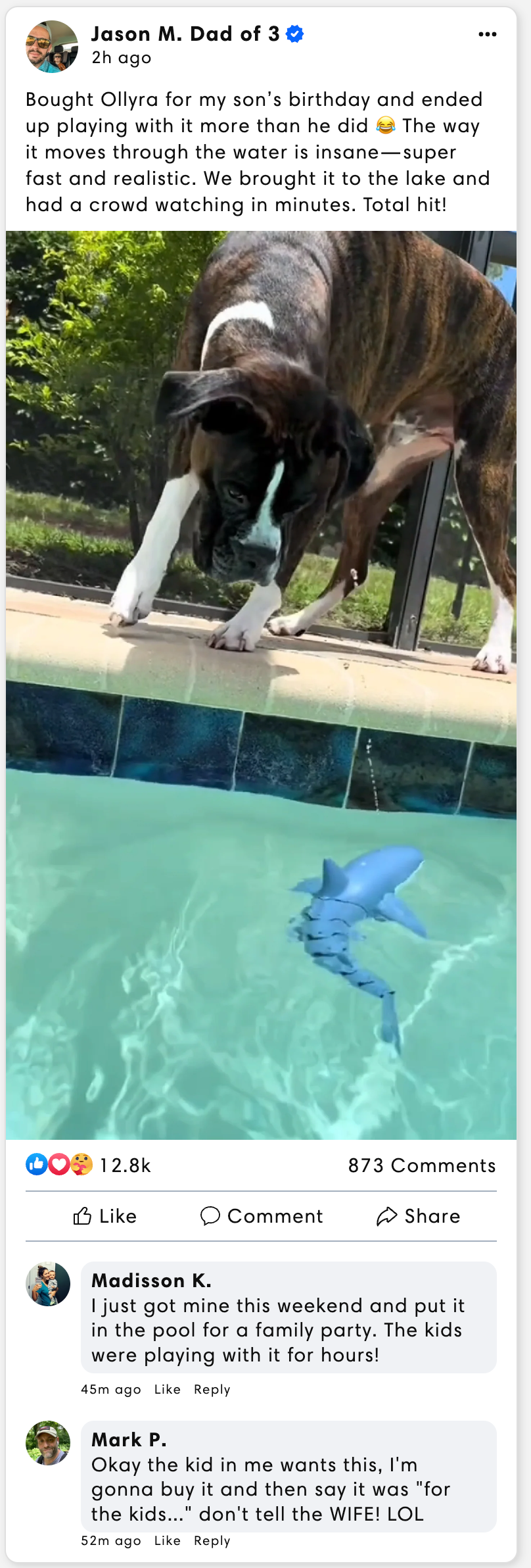 Experience lifelike swimming, responsive turns, and the thrill of a shark on the hunt — all in your pool, lake, or backyard pond!
